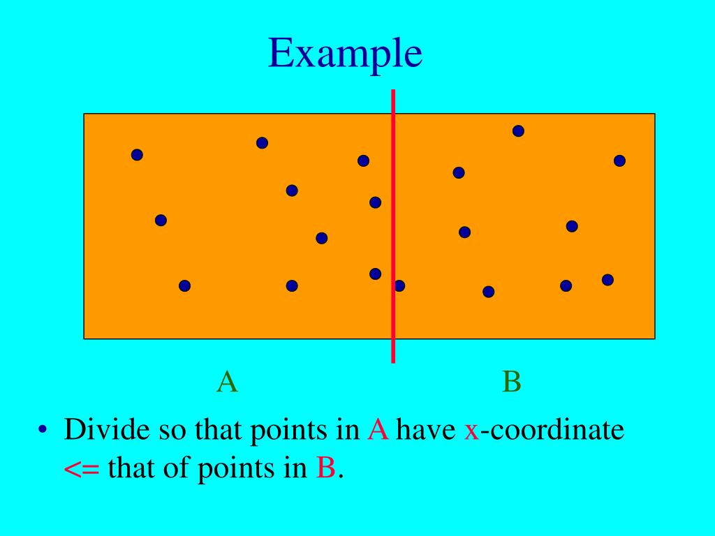 Example Divide so that points in A have x-coordinate <= that of points inB. A B