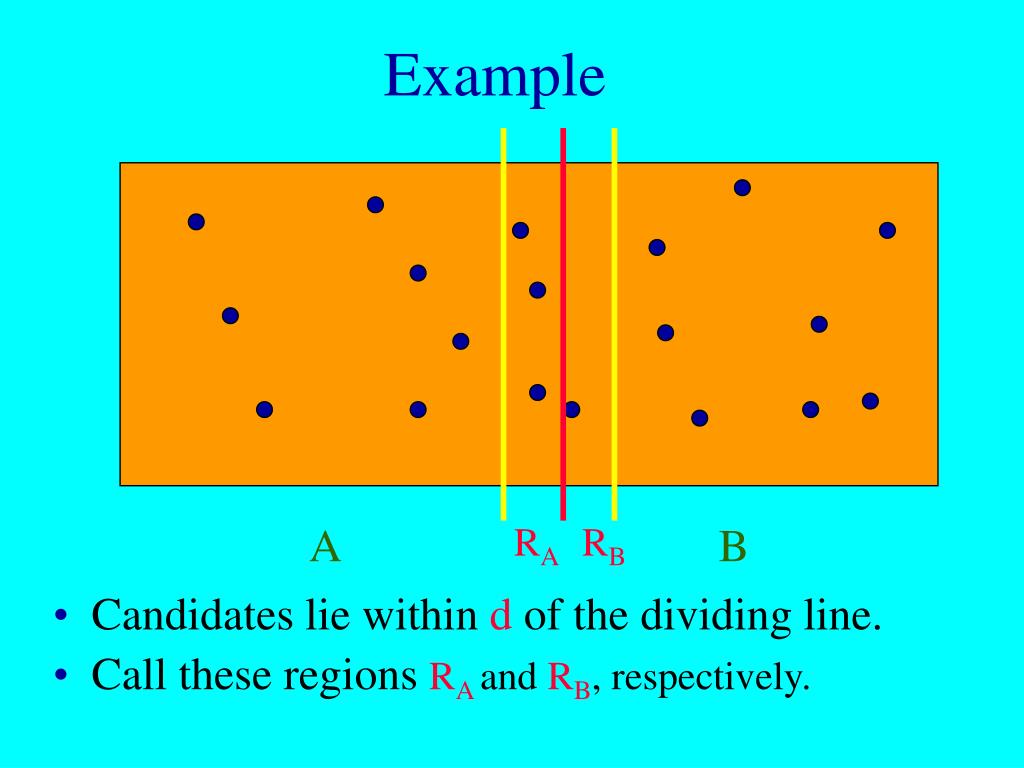 Example Candidates lie within d of the dividing line. A RA RB B • Call these regions RA and RB, respectively.