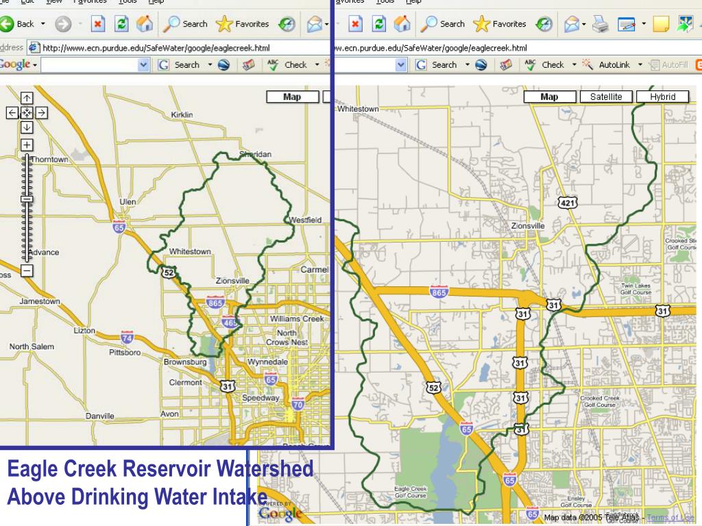 Mapping only – Google Maps “Mash-ups” • Google Maps (maps.google.com) released the Application Programming Interface (API) for their mapping technology, and created the world of Google Maps Mashups. • With the API, a programmer can create a mash-up by combining Google Maps with other data - like apartment listings, bird sitings, restaurants, etc. • So why not watershed information?