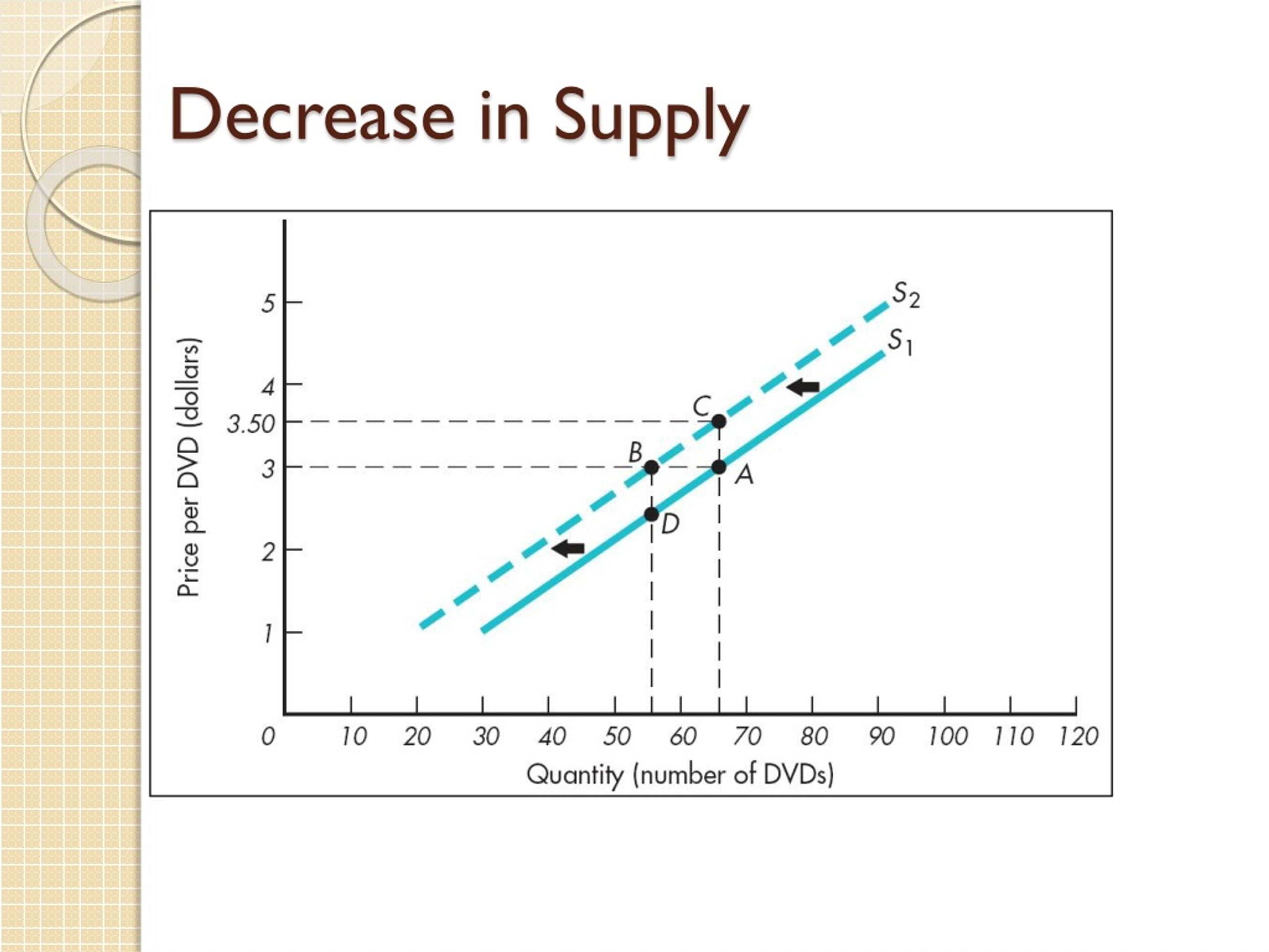 S1 Price (per unit) A B Shift in Supply (a shift of the curve) Quantity supplied (per unit of time) A Shift in Supply S0 £15 1,250 1,500