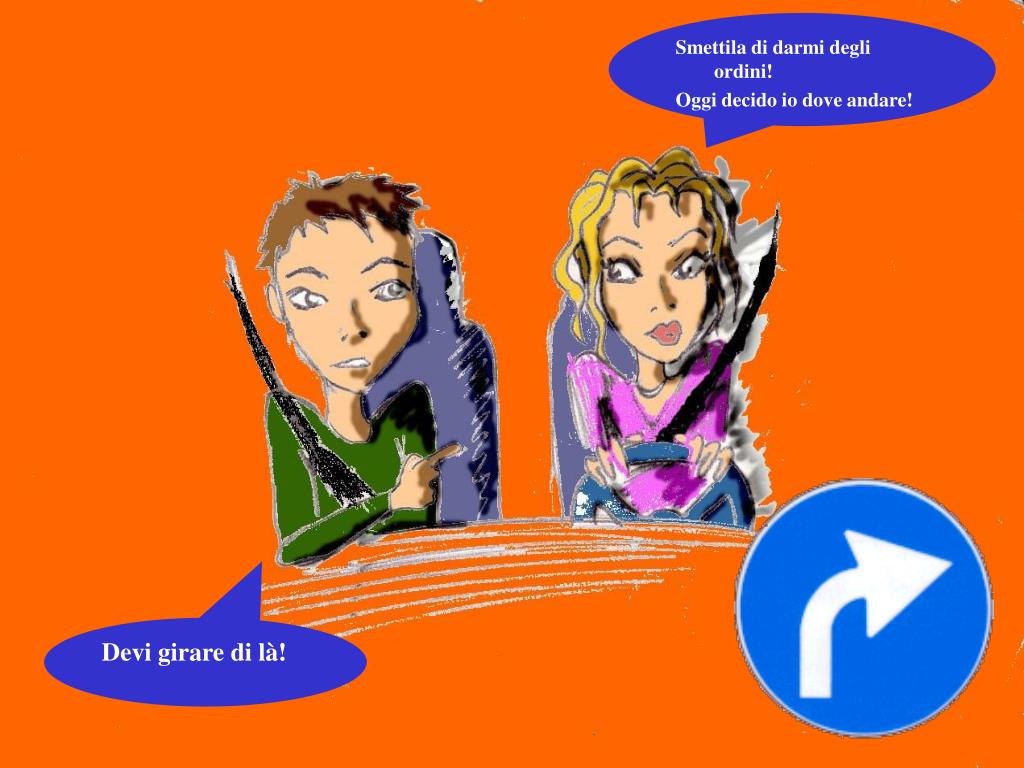 Smettila di darmi degli ordini! Oggi decido io dove andare! Devi girare di là!