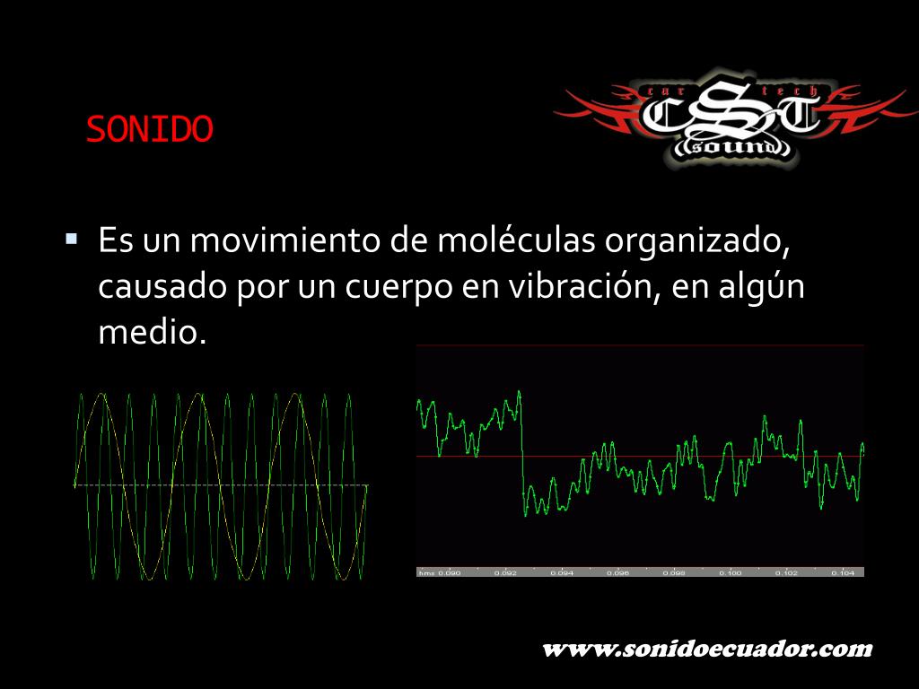 SONIDO • Es un movimiento de moléculas organizado, causado por un cuerpo en vibración, en algún medio. www.sonidoecuador.com