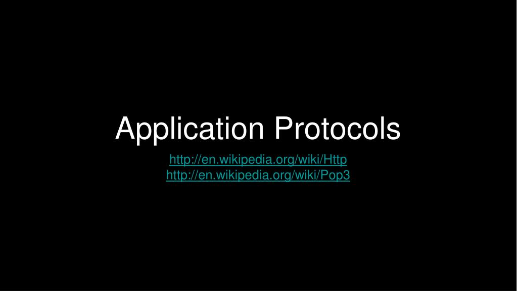 Application Protocols • http://en.wikipedia.org/wiki/Http • http://en.wikipedia.org/wiki/Pop3