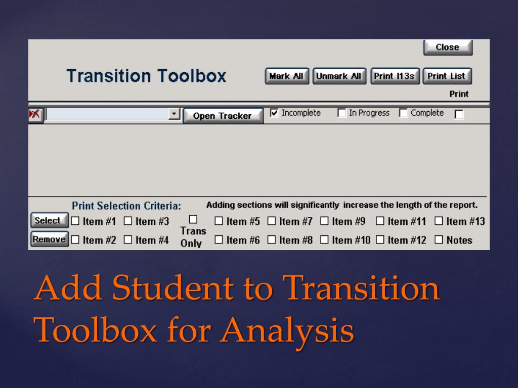 Printing criteria to show how each item is met significantly increases length of report, but provides detailed information. The process is repeated throughout the school year after each annual review.