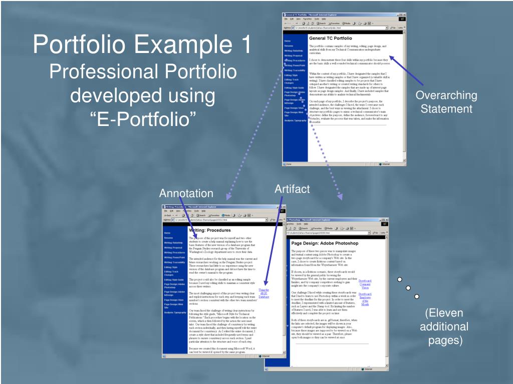 Portfolio Example 1Professional Portfolio developed using “E-Portfolio” Overarching Statement Artifact Annotation (Eleven additional pages)