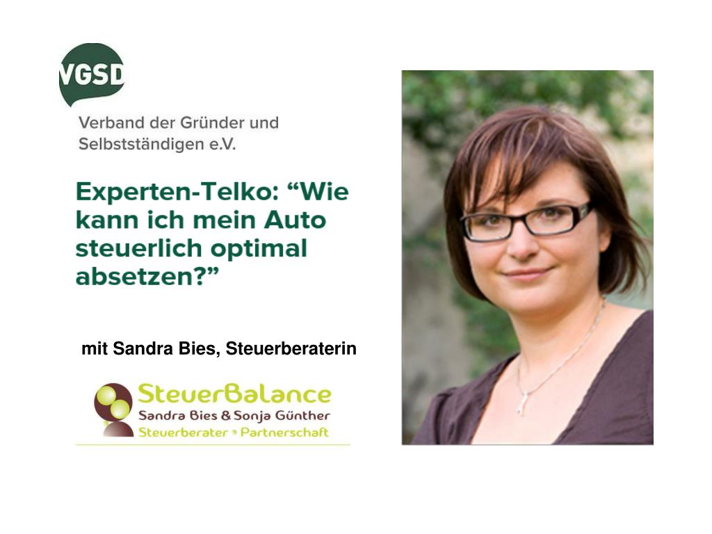 mit Sandra Bies, Steuerberaterin. Betriebs- oder Privatvermögen?. Betriebliche Nutzung > 50 % notwendiges Betriebsvermögen (BV) > 10 % < 50 % gewillkürtes BV < 10 % notwendiges Privatvermögen Zuordnung der Fahrten betrieblich veranlasste Fahrten