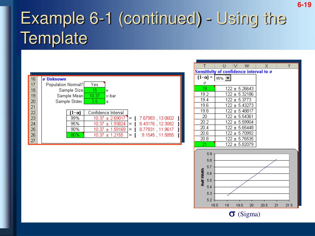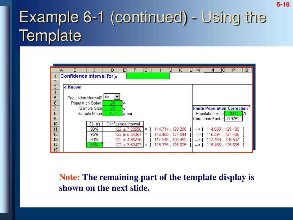 Example 6-1 (continued) - Using the Template when the Sample Data is Known