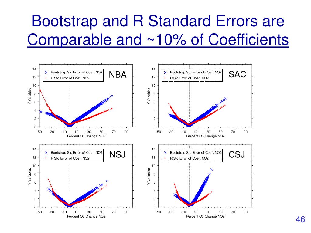 Bootstrap and R Standard Errors are Comparable and ~10% of Coefficients SAC NBA NSJ CSJ