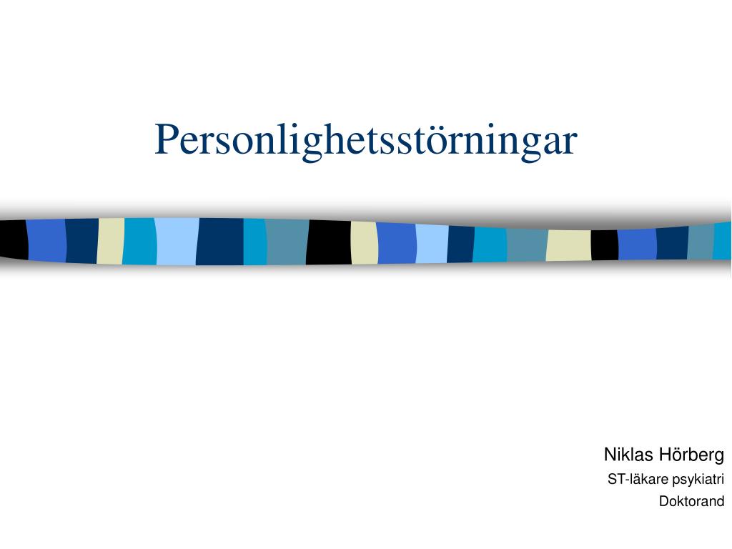 Personlighetsstörningar Niklas Hörberg ST-läkare psykiatri Doktorand