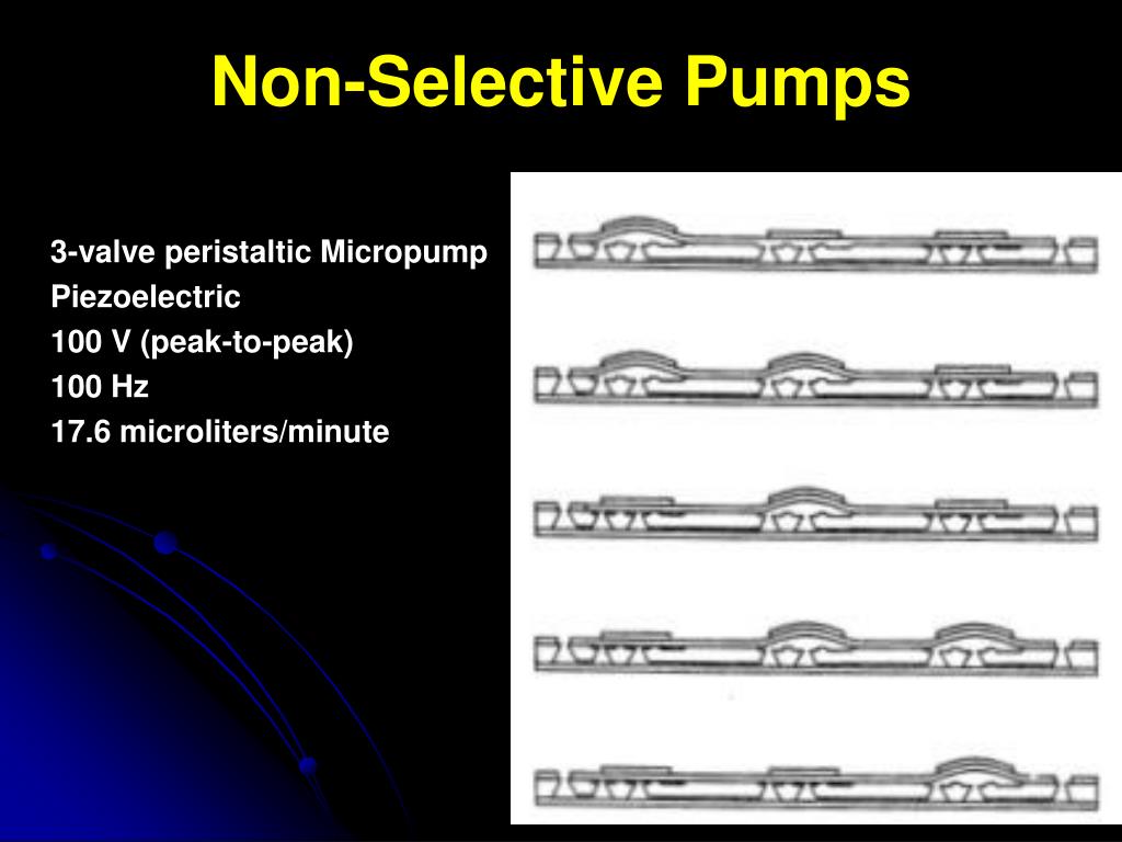 Non-Selective Pumps 3-valve peristaltic Micropump Piezoelectric 100 V (peak-to-peak) 100 Hz 17.6 microliters/minute