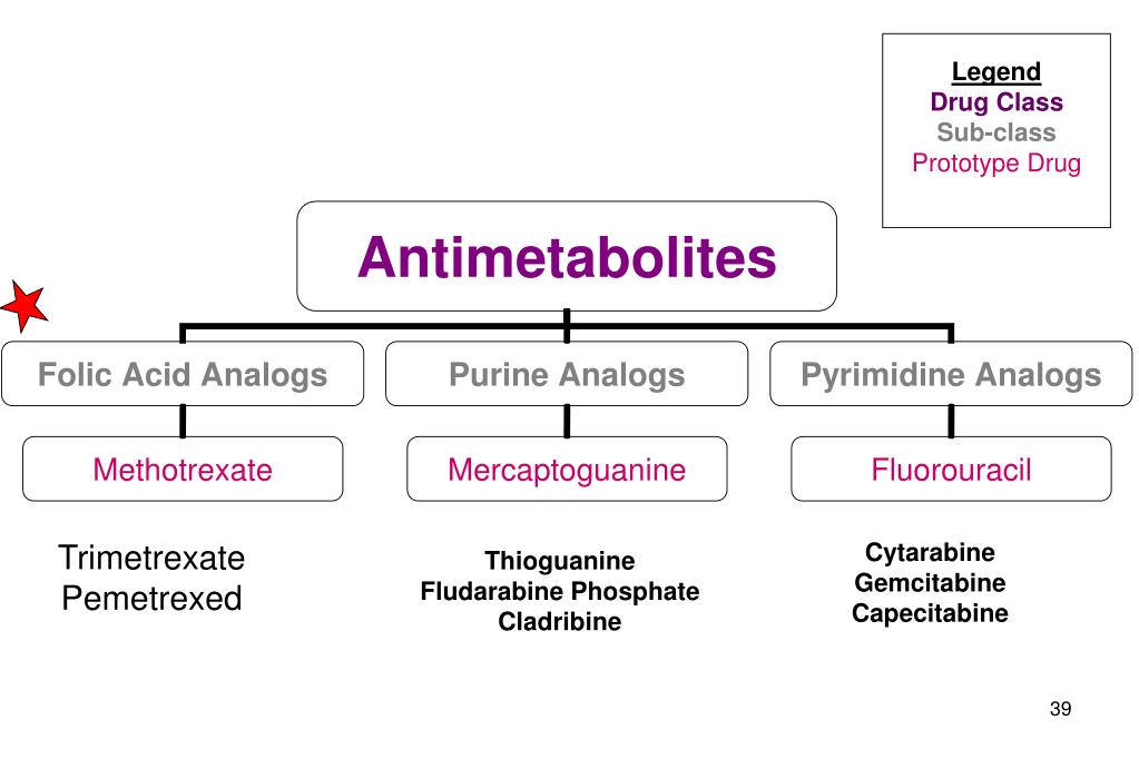 Legend Drug Class Sub-class Prototype Drug Cytarabine Gemcitabine Capecitabine Trimetrexate Pemetrexed Thioguanine Fludarabine Phosphate Cladribine