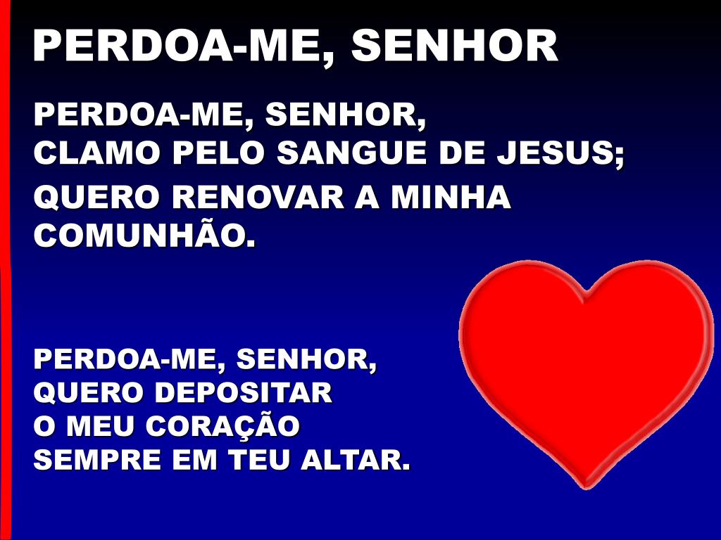 PERDOA-ME, SENHOR PERDOA-ME, SENHOR,CLAMO PELO SANGUE DE JESUS; QUERO RENOVAR A MINHA COMUNHÃO. PERDOA-ME, SENHOR,QUERO DEPOSITARO MEU CORAÇÃOSEMPRE EM TEU ALTAR.