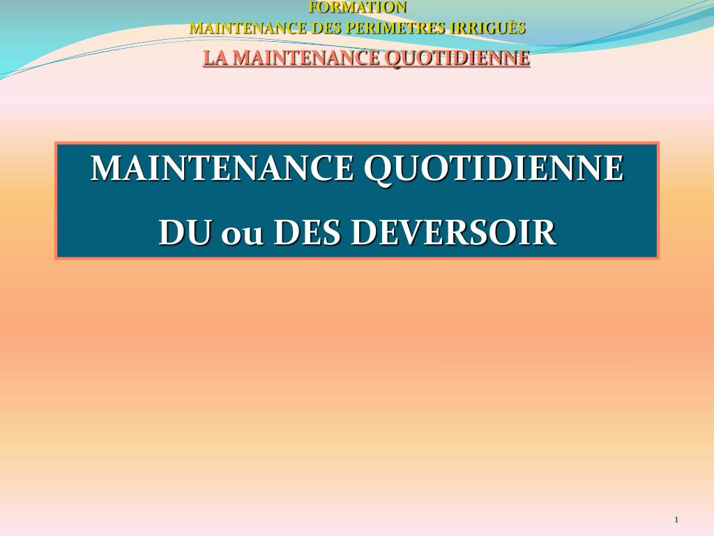 FORMATION MAINTENANCE DES PERIMETRES IRRIGUÈS LA MAINTENANCE QUOTIDIENNE MAINTENANCE QUOTIDIENNE DU ou DES DEVERSOIR