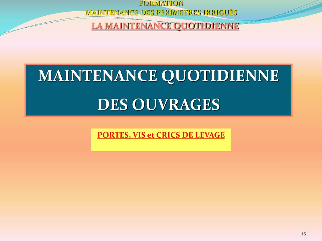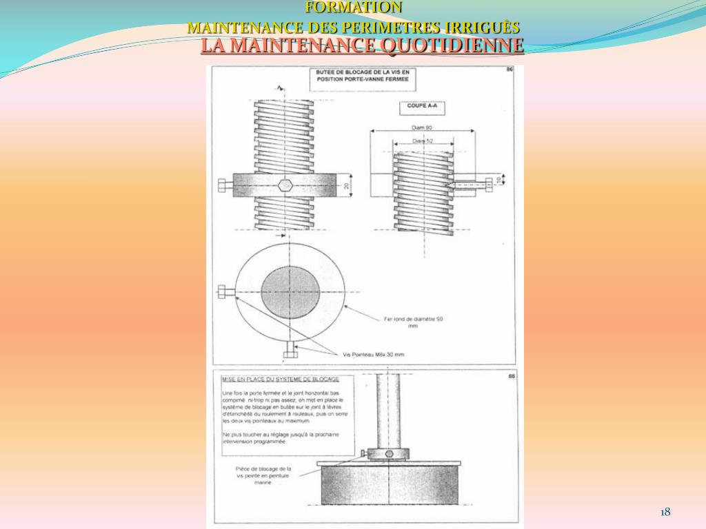 FORMATION MAINTENANCE DES PERIMETRES IRRIGUÈS LA MAINTENANCE QUOTIDIENNE MAINTENANCE QUOTIDIENNE DES OUVRAGES PORTES, VIS et CRICS DE LEVAGE