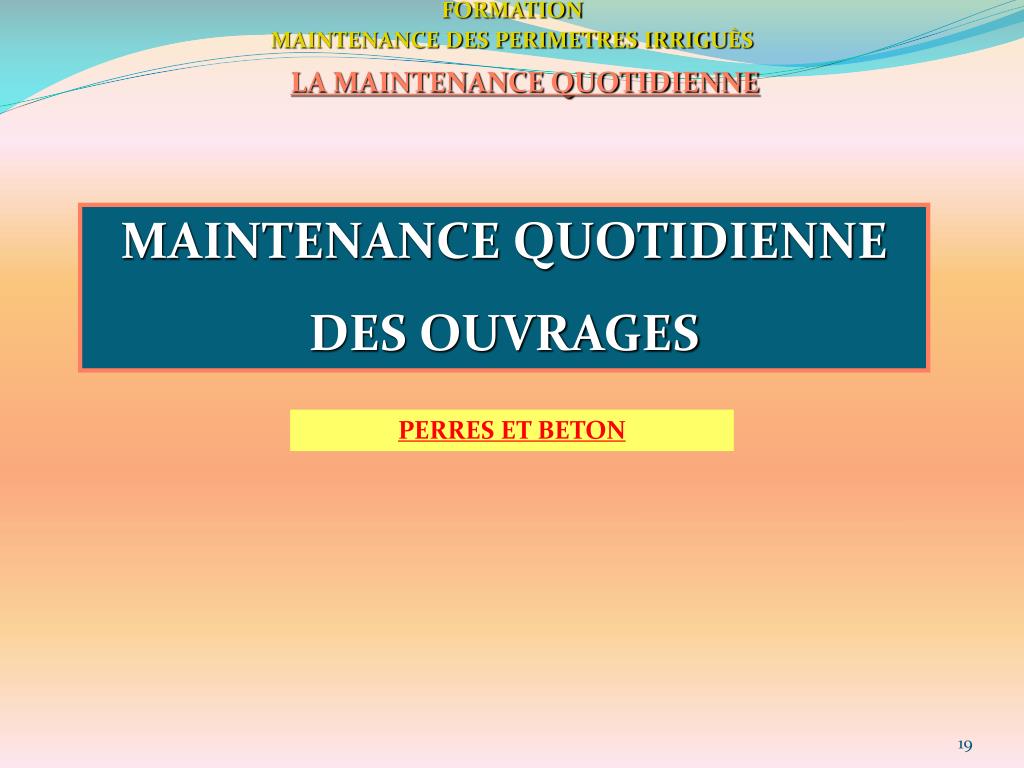 FORMATION MAINTENANCE DES PERIMETRES IRRIGUÈS LA MAINTENANCE QUOTIDIENNE MAINTENANCE QUOTIDIENNE DES OUVRAGES PERRES ET BETON