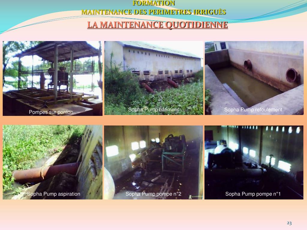 FORMATION MAINTENANCE DES PERIMETRES IRRIGUÈS LA MAINTENANCE QUOTIDIENNE MAINTENANCE QUOTIDIENNE DU POSTE DE POMPAGE OUVRAGES DE DISTRIBUTION