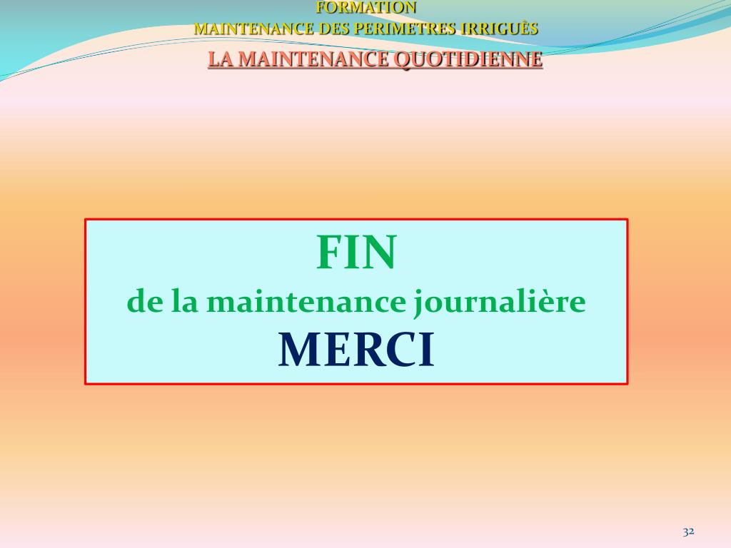 FORMATION MAINTENANCE DES PERIMETRES IRRIGUÈS LA MAINTENANCE QUOTIDIENNE FIN de la maintenance journalière MERCI