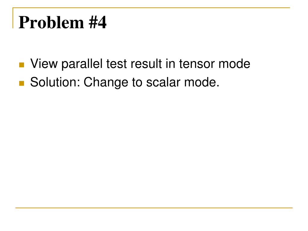 Problem #4 • View parallel test result in tensor mode • Solution: Change to scalar mode.