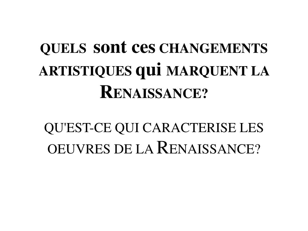 QUELS sont ces CHANGEMENTS ARTISTIQUES qui MARQUENT LA RENAISSANCE? QU'EST-CE QUI CARACTERISE LES OEUVRES DE LA RENAISSANCE?