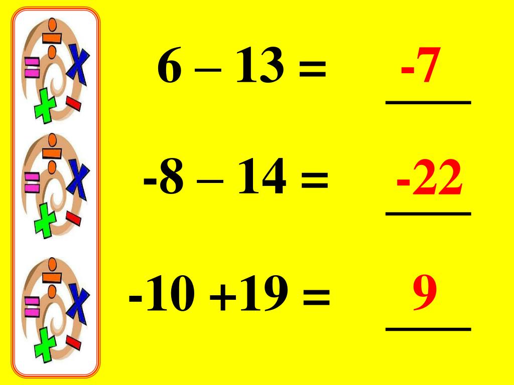 6 – 13 = -7 -8 – 14 = -22 9 -10 +19 =