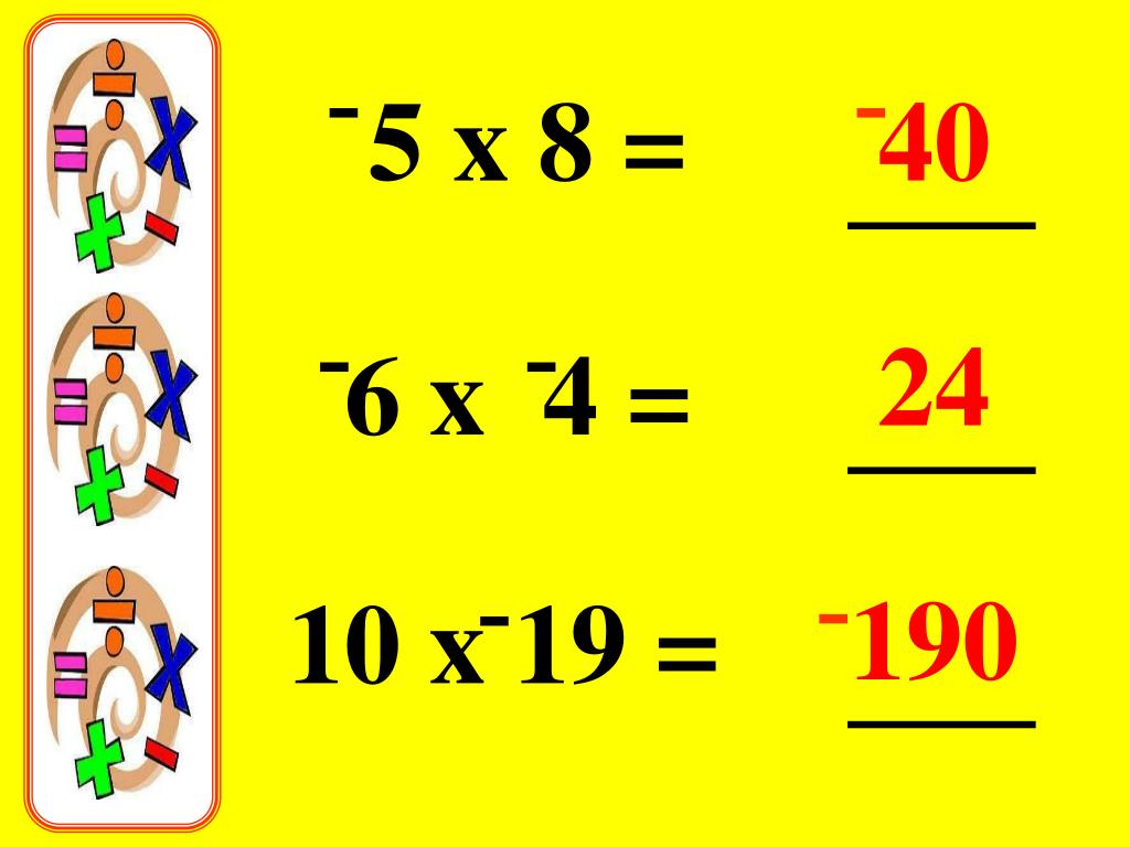 5 x 8 = 40 24 6 x 4 = 190 10 x 19 =