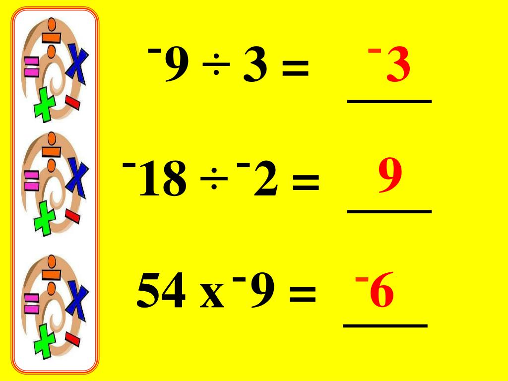 9 ÷ 3 = 3 9 18 ÷ 2 = 6 54 x 9 =