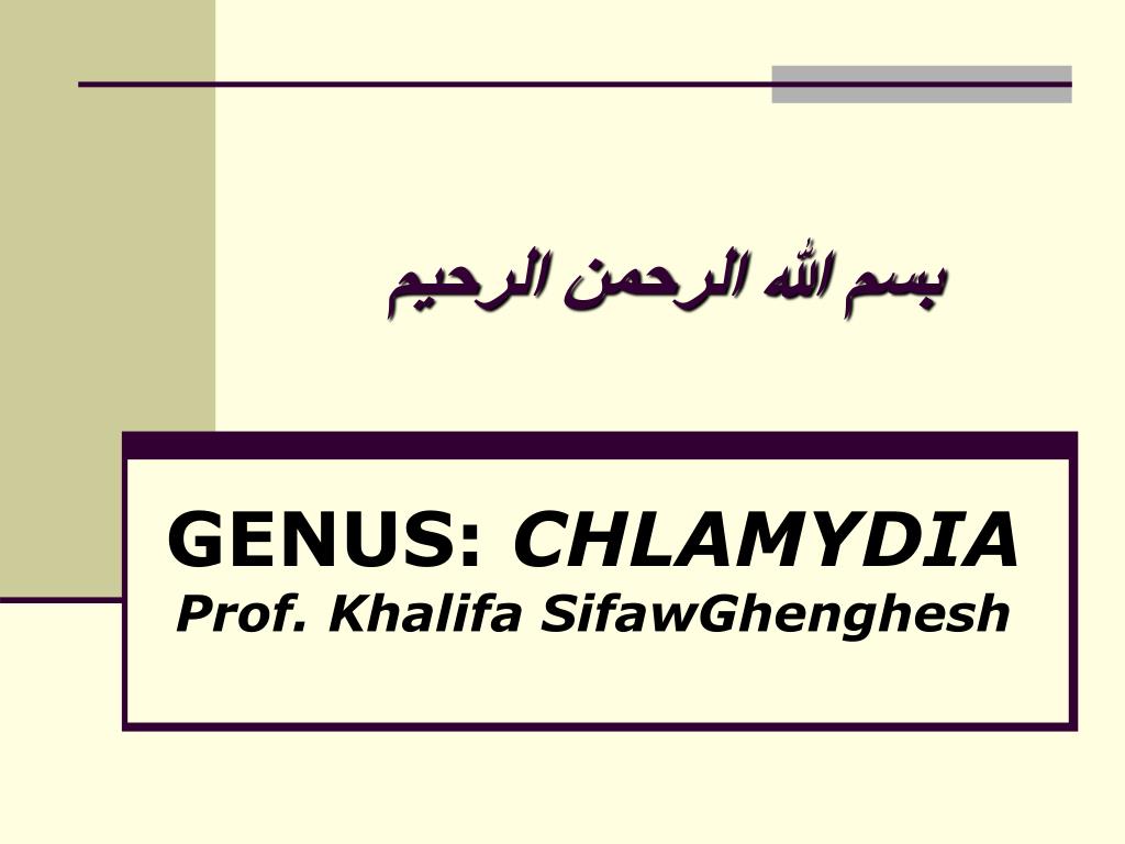 بسم الله الرحمن الرحيم GENUS: CHLAMYDIA Prof. Khalifa SifawGhenghesh