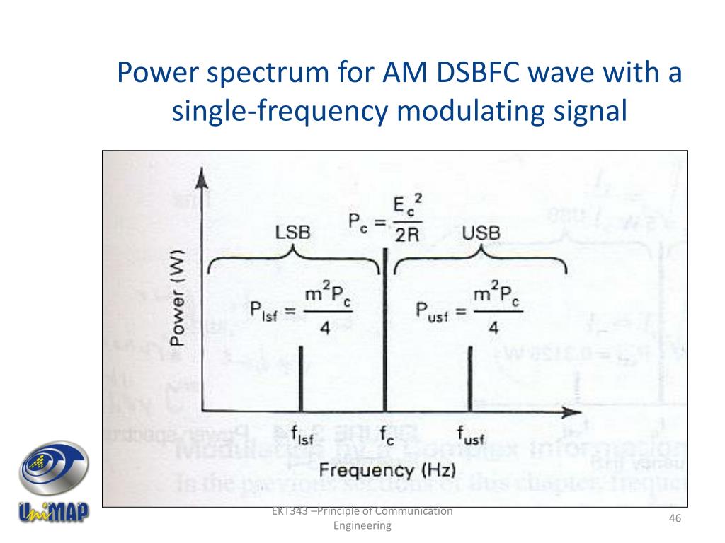 Power spectrum for AM DSBFC wave with a single-frequency modulating signal EKT343 –Principle of Communication Engineering