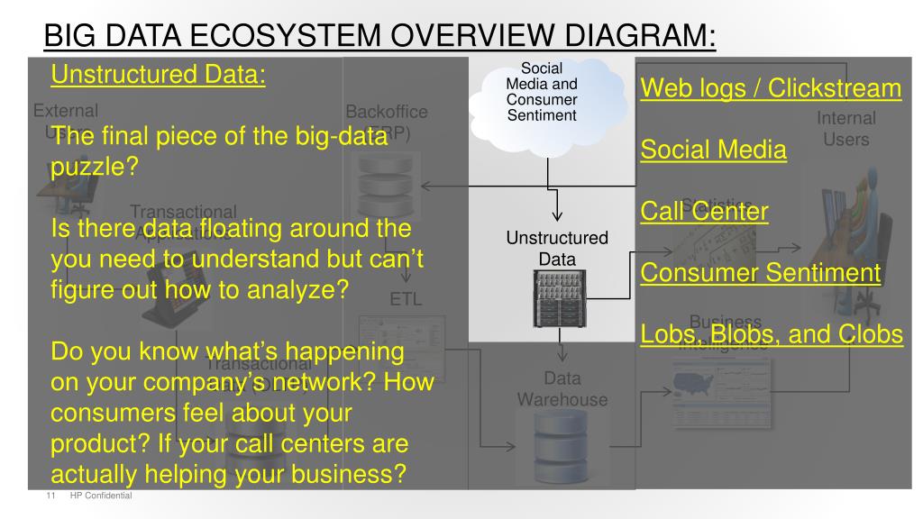 THE BIG DATA ECOSYSTEM AND YOU !. BIG DATA ECOSYSTEM OVERVIEW DIAGRAM:. Social Media and Consumer Sentiment. External Users. Backoffice (ERP). Internal Users. Statistics. Transactional Applications. Unstructured Data. ETL. Business Intelligence. Transactional Data ( OLTP).