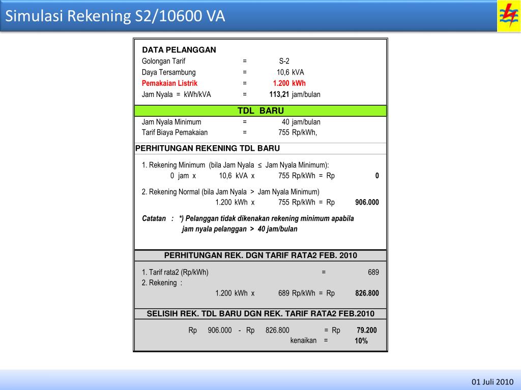 Simulasi Rekening S2/10600 VA 01 Juli 2010