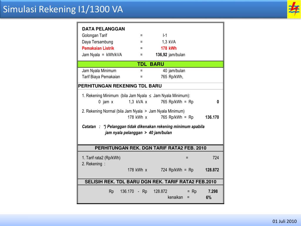 Simulasi Rekening B1/1300 VA 01 Juli 2010