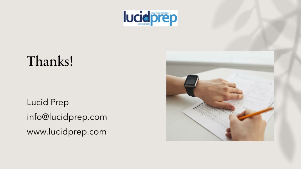 Lucid Prep info@lucidprep.com www.lucidprep.com Thanks!