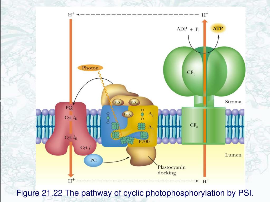 Figure 21.22 The pathway of cyclic photophosphorylation by PSI.