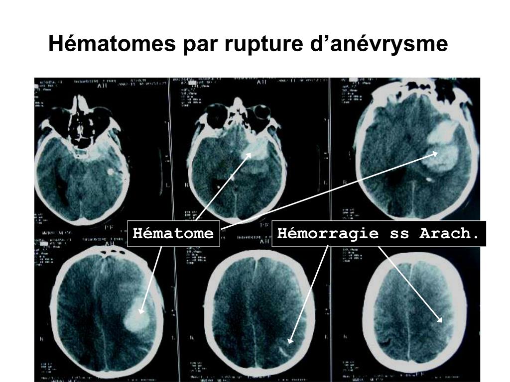 Hématome Hémorragie ss Arach. Hématomes par rupture d’anévrysme