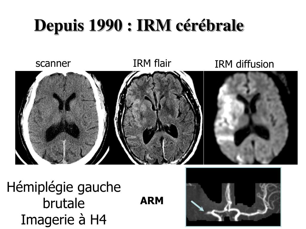 ARM Depuis 1990 : IRM cérébrale scanner IRM flair IRM diffusion Hémiplégie gauche brutale Imagerie à H4