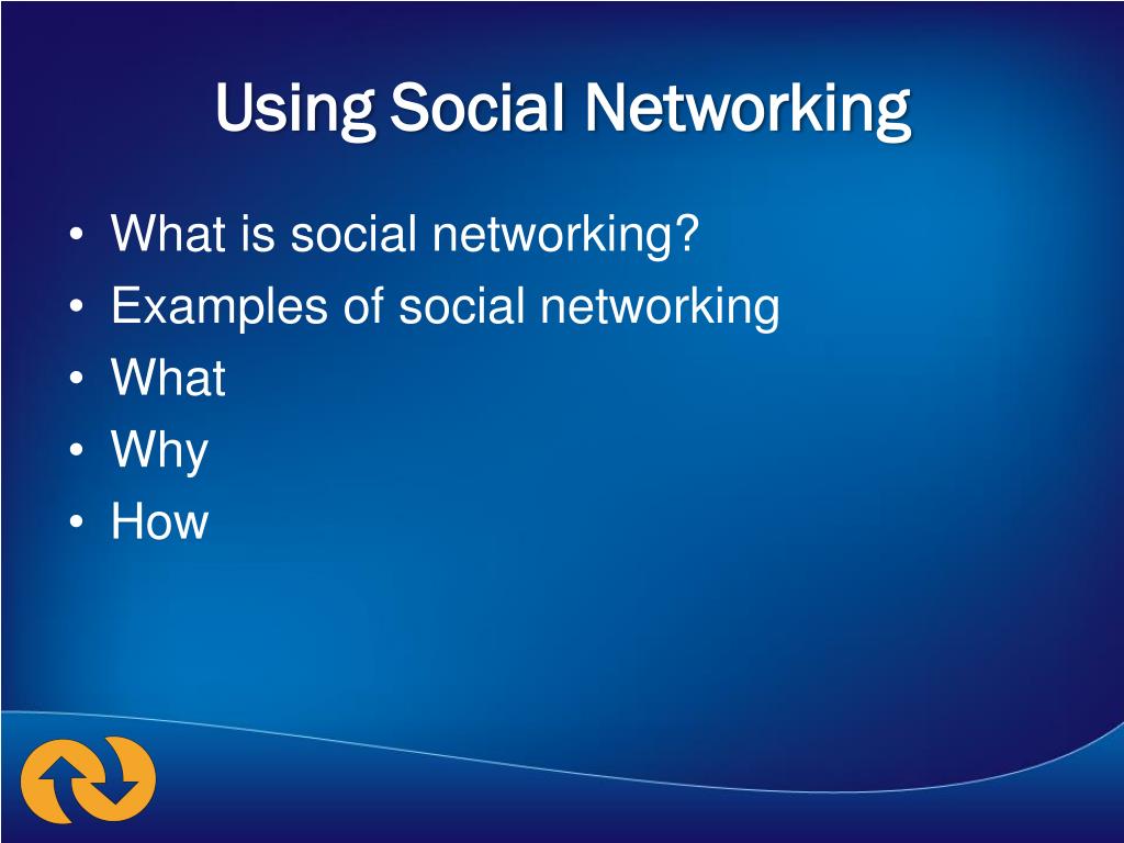 Using Social Networking • What is social networking? • Examples of social networking • What • Why • How
