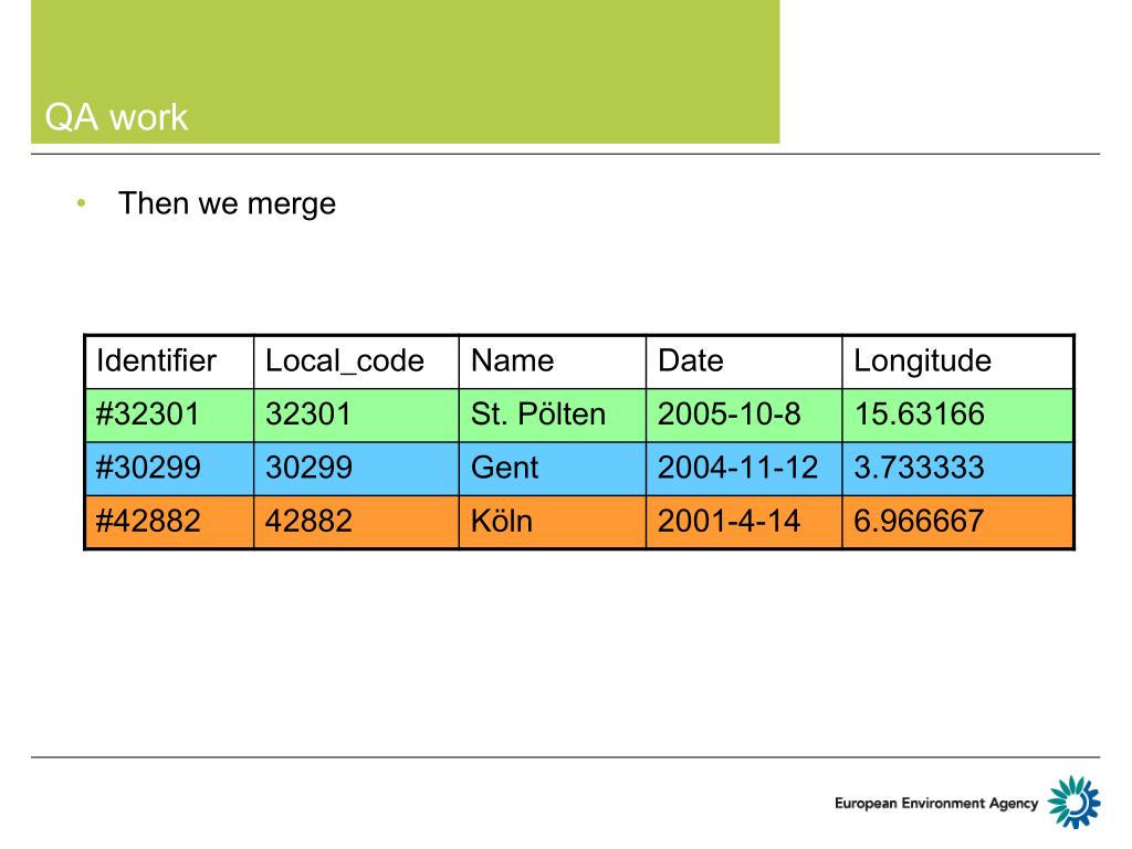 QA work • Then we merge by letting the newer sources overwrite the older: