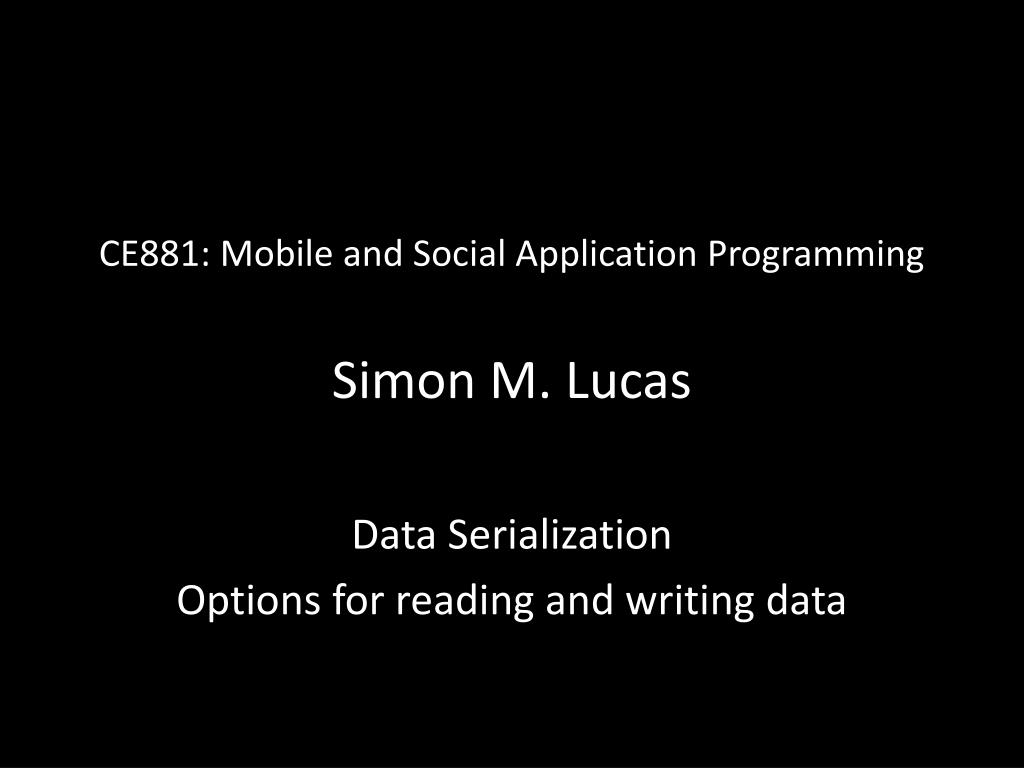 CE881: Mobile and Social Application ProgrammingSimon M. Lucas Data Serialization Options for reading and writing data