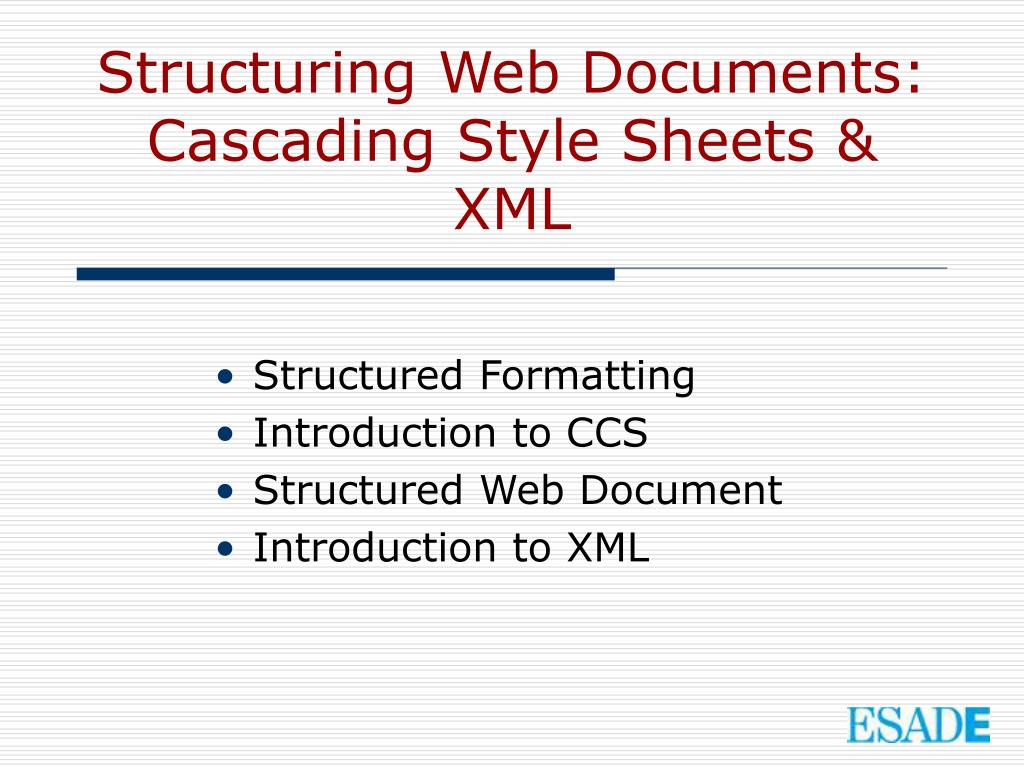 Structuring Web Documents:Cascading Style Sheets & XML Structured Formatting Introduction to CCS Structured Web Document Introduction to XML