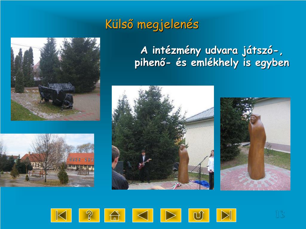 Külső megjelenés Az intézmény udvara parkosított Az udvari játékok biztonságosak, az előírásoknak megfelelőek