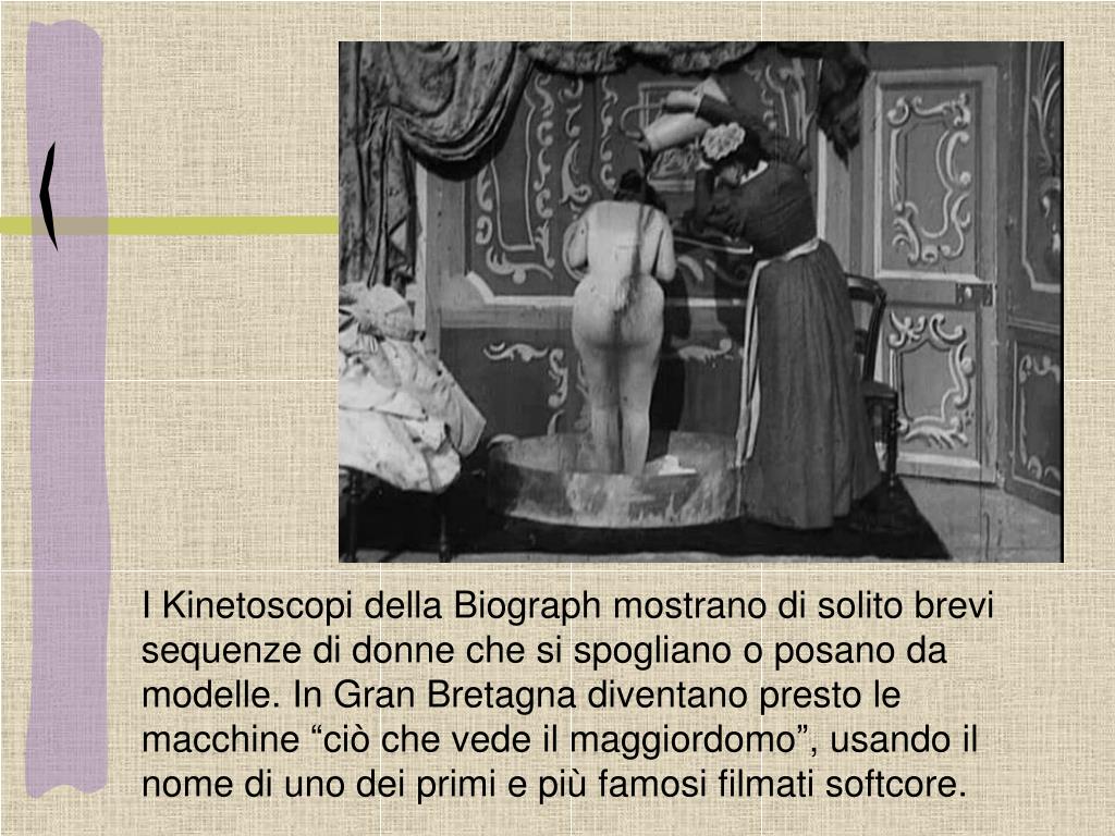 I Kinetoscopi della Biograph mostrano di solito brevi sequenze di donne che si spogliano o posano da modelle. In Gran Bretagna diventano presto le macchine “ciò che vede il maggiordomo”, usando il nome di uno dei primi e più famosi filmati softcore.