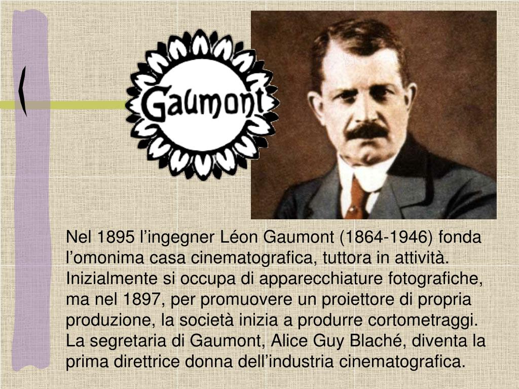 Nel 1895 l’ingegner Léon Gaumont (1864-1946) fonda l’omonima casa cinematografica, tuttora in attività. Inizialmente si occupa di apparecchiature fotografiche, ma nel 1897, per promuovere un proiettore di propria produzione, la società inizia a produrre cortometraggi. La segretaria di Gaumont, Alice Guy Blaché, diventa la prima direttrice donna dell’industria cinematografica.