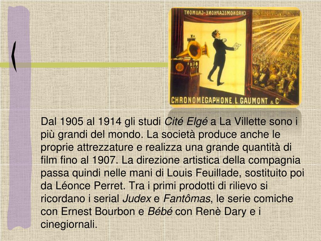 Dal 1905 al 1914 gli studi Cité Elgé a La Villette sono i più grandi del mondo. La società produce anche le proprie attrezzature e realizza una grande quantità di film fino al 1907. La direzione artistica della compagnia passa quindi nelle mani di Louis Feuillade, sostituito poi da Léonce Perret. Tra i primi prodotti di rilievo si ricordano i serial Judex e Fantômas, le serie comiche con Ernest Bourbon e Bébé con Renè Dary e i cinegiornali.
