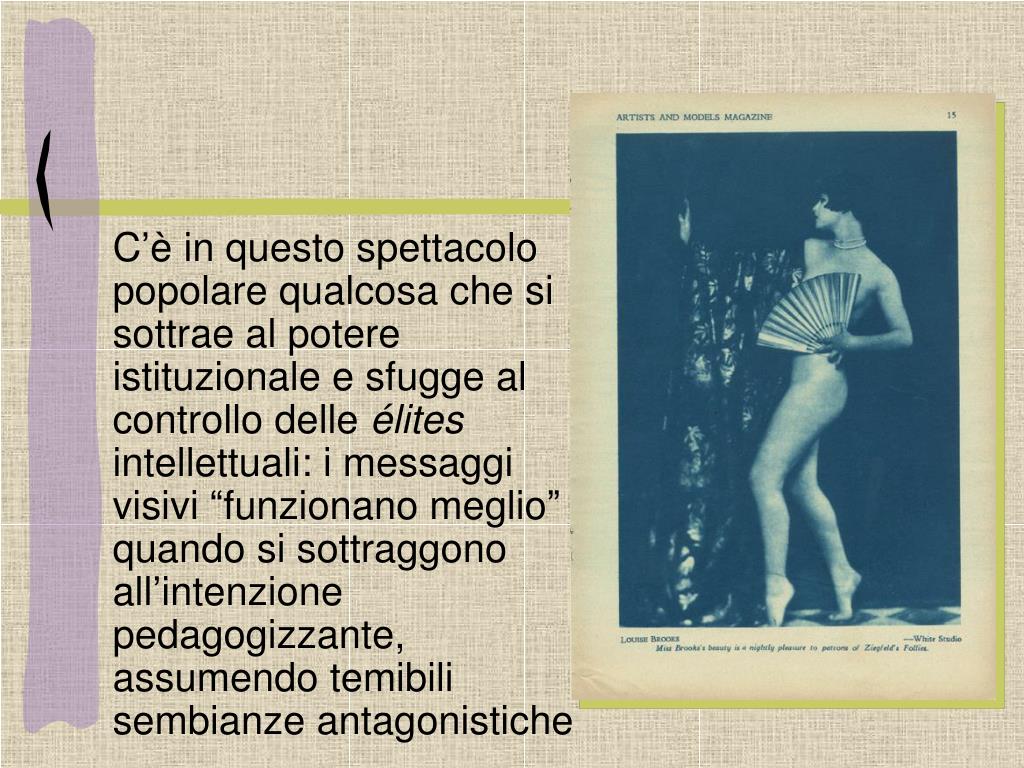 C’è in questo spettacolo popolare qualcosa che si sottrae al potere istituzionale e sfugge al controllo delle élites intellettuali: i messaggi visivi “funzionano meglio” quando si sottraggono all’intenzione pedagogizzante, assumendo temibili sembianze antagonistiche