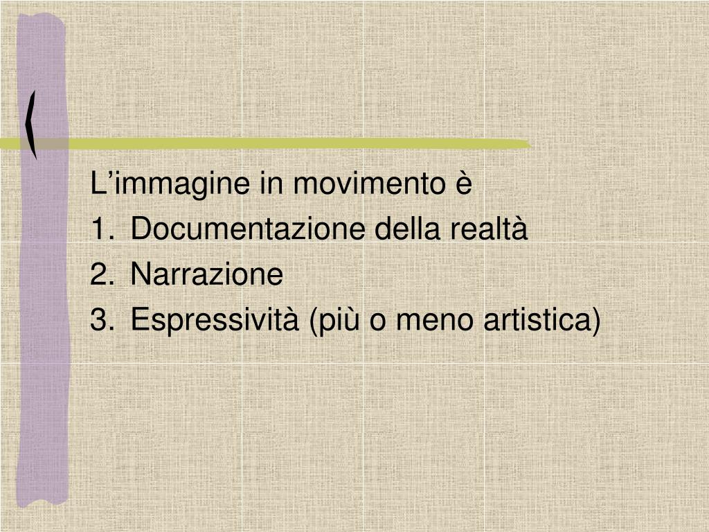 L’immagine in movimento è • Documentazione della realtà • Narrazione • Espressività (più o meno artistica)