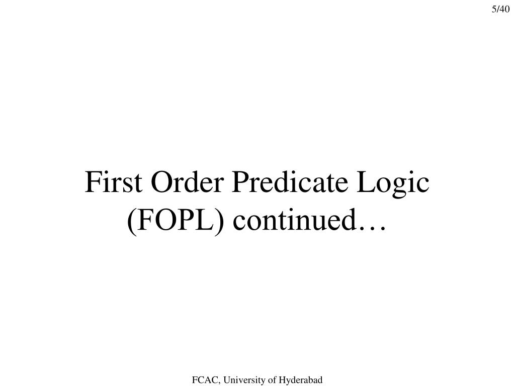 First Order Predicate Logic (FOPL) continued… FCAC, University of Hyderabad