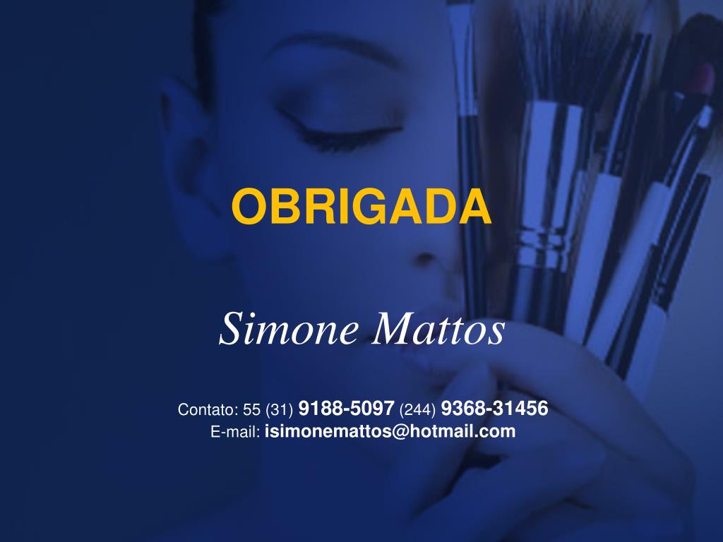 OBRIGADA Simone Mattos Contato: 55 (31) 9188-5097 (244) 9368-31456 E-mail: isimonemattos@hotmail.com