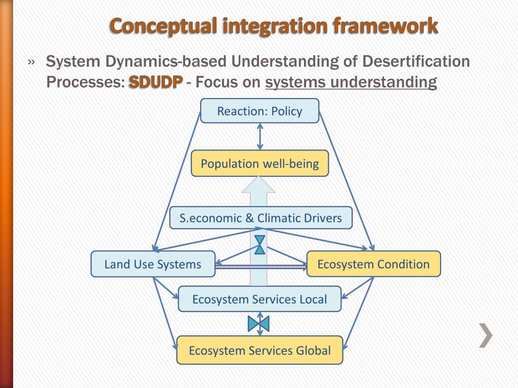 System Dynamics-based Understanding of Desertification Processes: SDUDP - Focus on systems understanding Conceptual integration framework