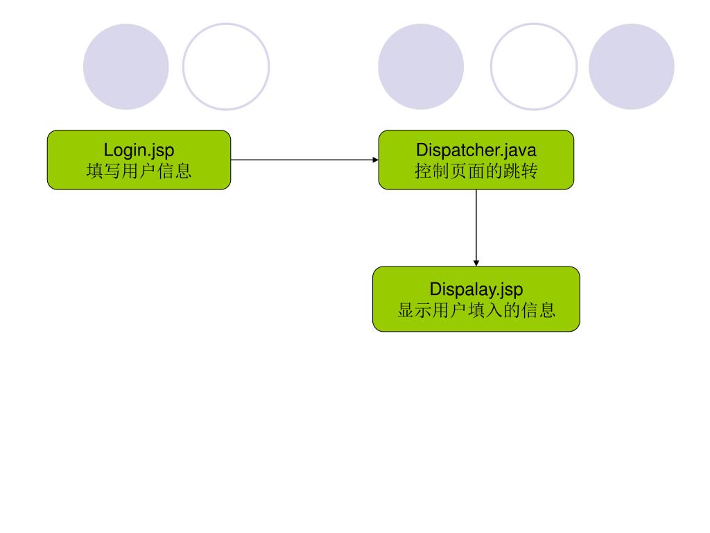 Login.jsp 填写用户信息 Dispatcher.java 控制页面的跳转 Dispalay.jsp 显示用户填入的信息