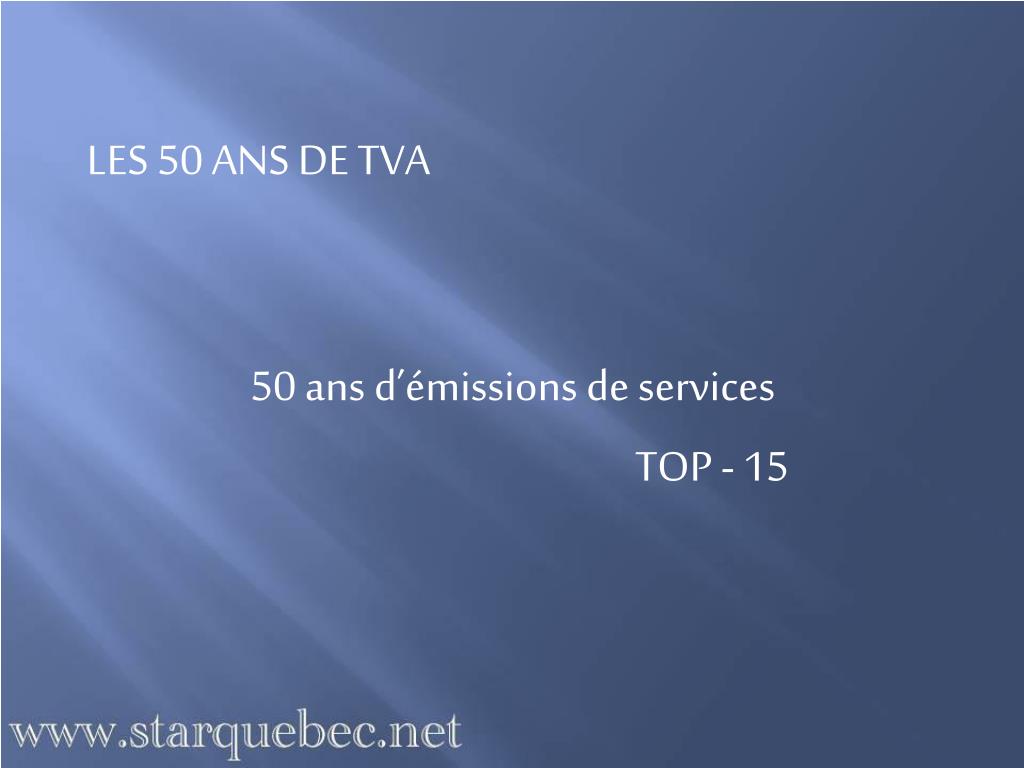 LES 50 ANS DE TVA. 50 ans d’émissions de services. TOP - 15.